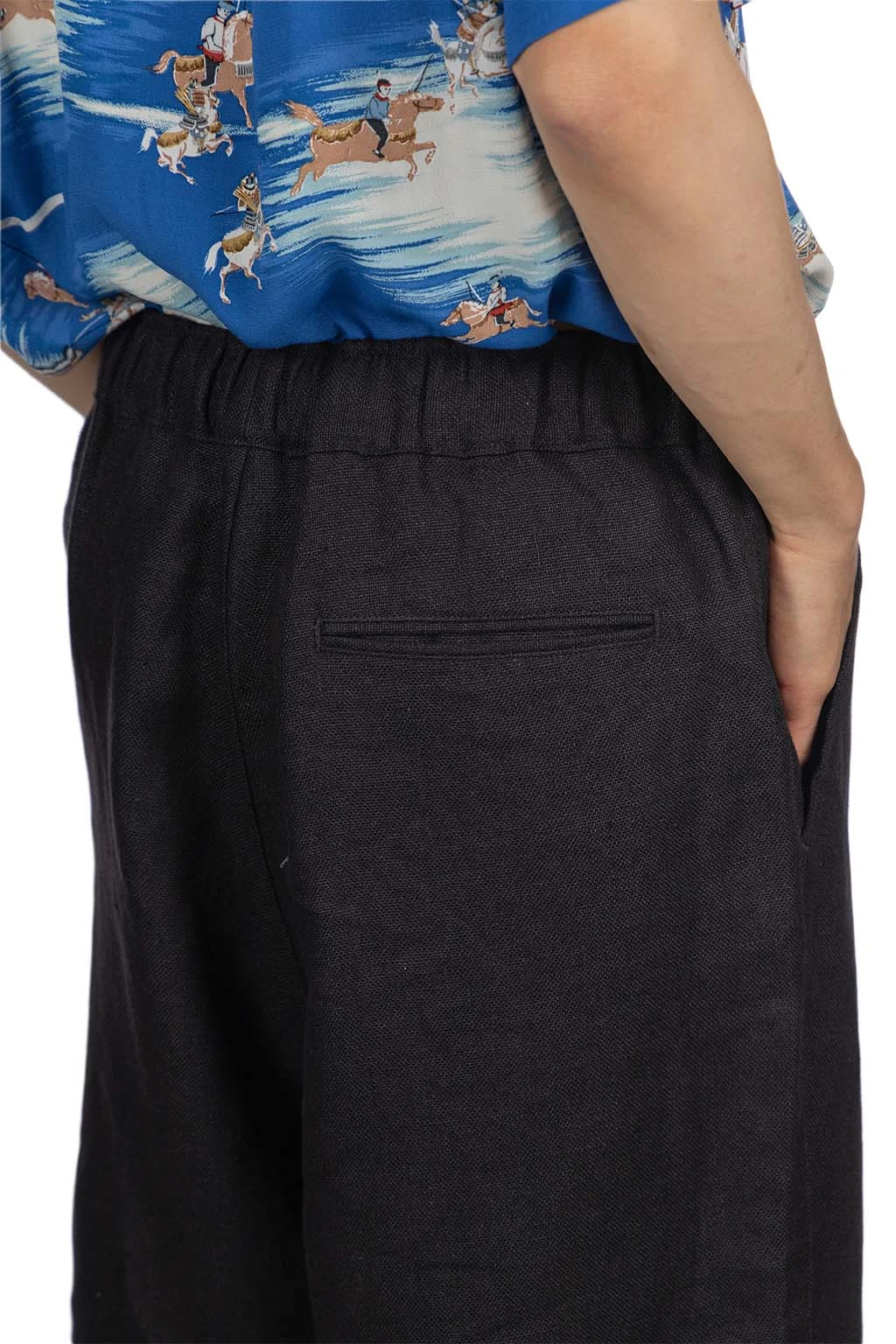- Elastic waist with sashiko stitching drawcord